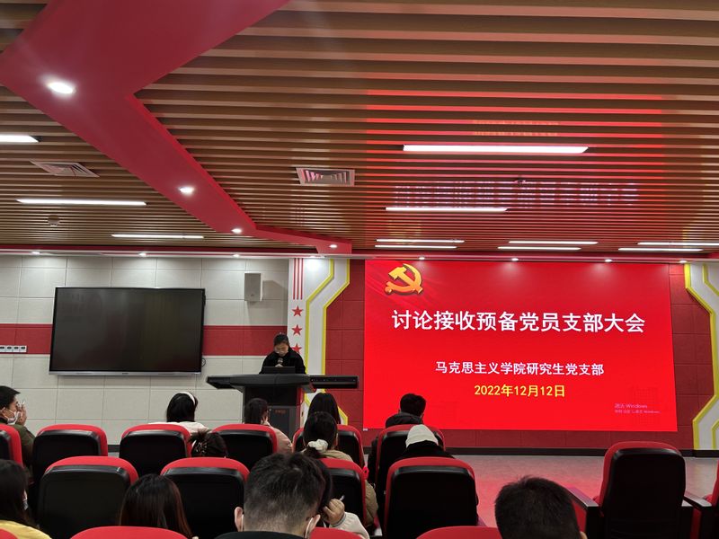 12月12日,马克思主义学院研究生党支部在学院1409会议室召开党员大会,讨论接收李媛等6位同学为中共预备党员。会议由研究生党支部书记裴利萍主持,支部全体党员参加。