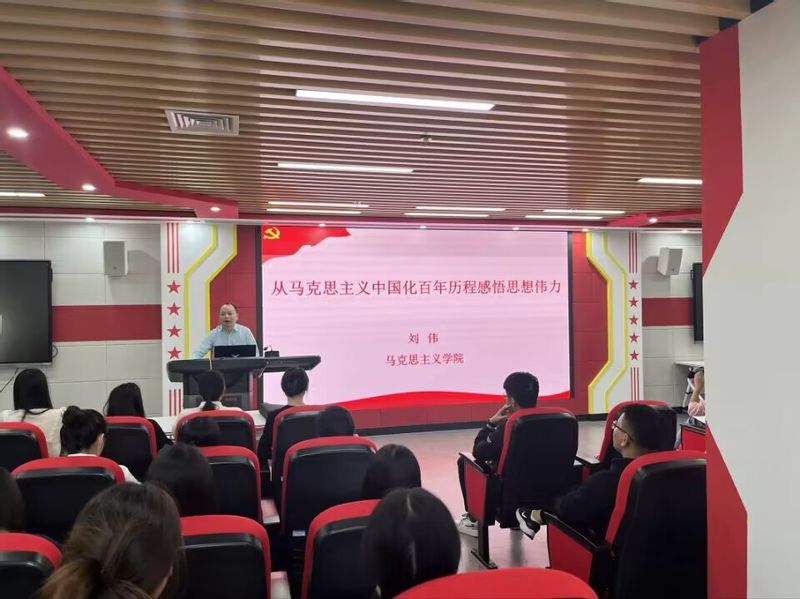 刘伟从马克思主义中国化的内在逻辑、马克思主义中国化的百年历程、马克思主义中国化的基本经验等三个方面进行了阐述,引导大家认真学习党的理论知识、坚定理想信念,鼓励大家加强自身理论学习和专业学习,夯实基础,以党员的标准严格要求自己。