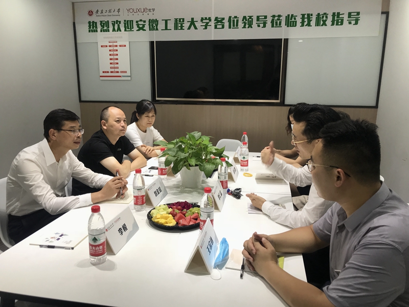 在淮北,刘金斌、刘伟一行与淮北师范大学学生处处长田向阳、副处长杨振兴、就业指导中心主任李雨奎就大学生就业创业工作进行了充分交流。在走访校友企业--淮北优学教育集团过程中,刘金斌、刘伟分别介绍了学校和数理学院近年来发展状况。优学教育集团总经理李仁志汇报了自己毕业14年以来的成长历程,介绍目前公司的运营情况和未来的发展规划,表达了与母校开展就业协作的强烈愿望。