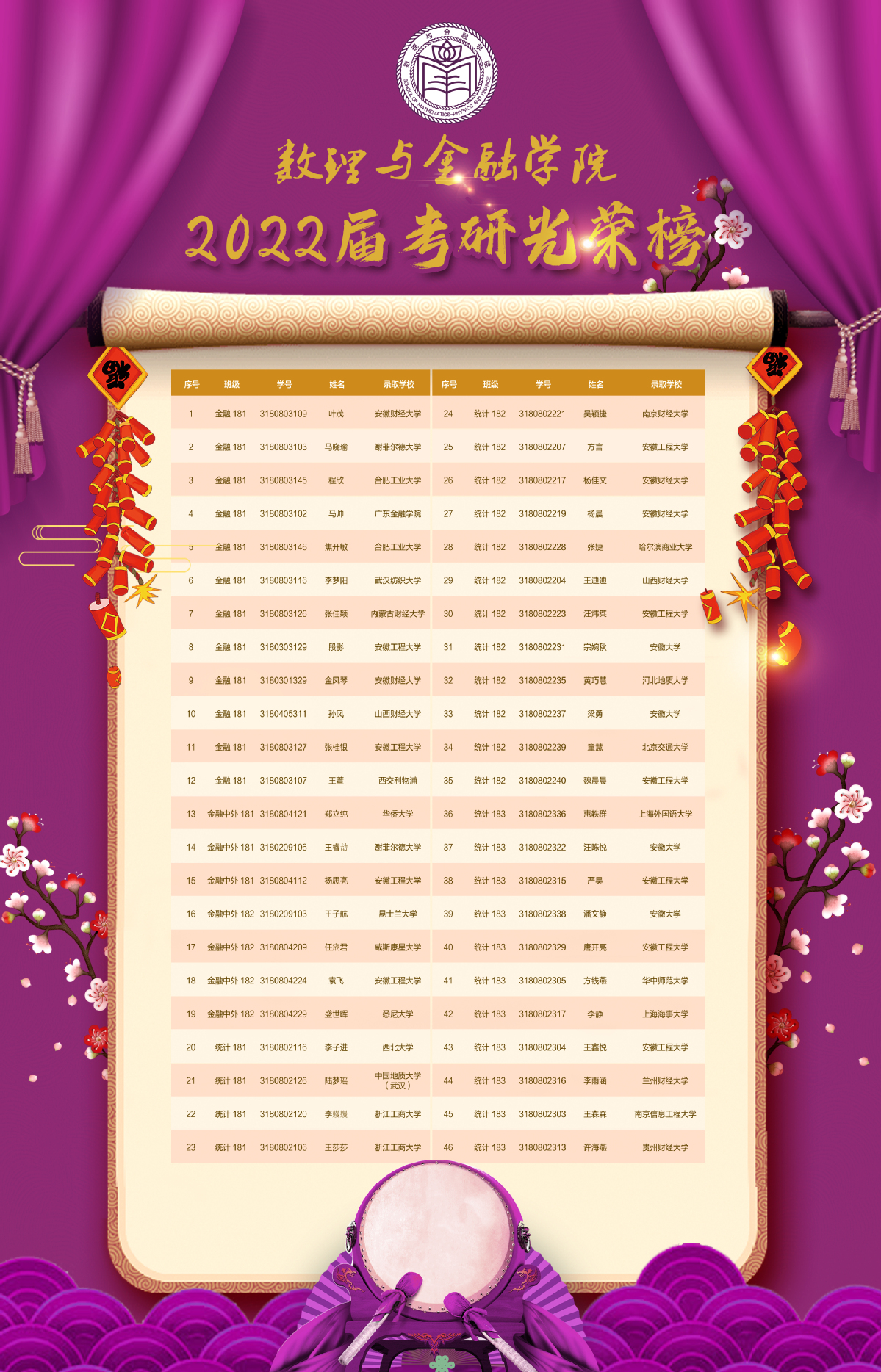 数理与金融学院2022届考研光荣榜