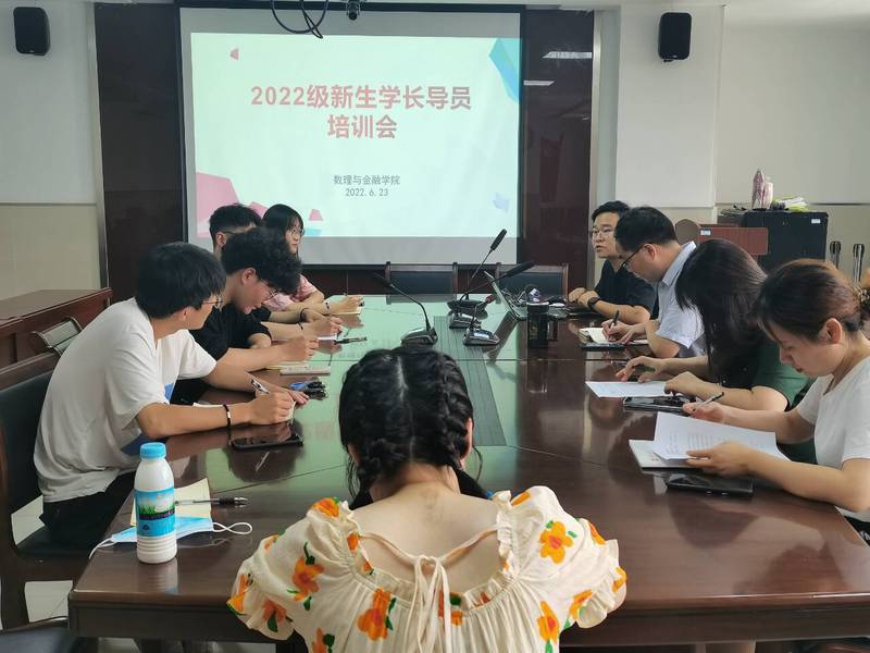 为更好发挥2022级新生学长导员在新生教育管理工作中的作用,帮助新生度过入学适应期,养成良好的学习生活习惯,6月23日,数理与金融学院在图书馆1612会议室召开新生学长导员培训会。学院党委副书记何志恒、团委书记苏燕南、2021级辅导员蒋书云以及新生学长导员参加会议,2020级辅导员汤建文主持会议。