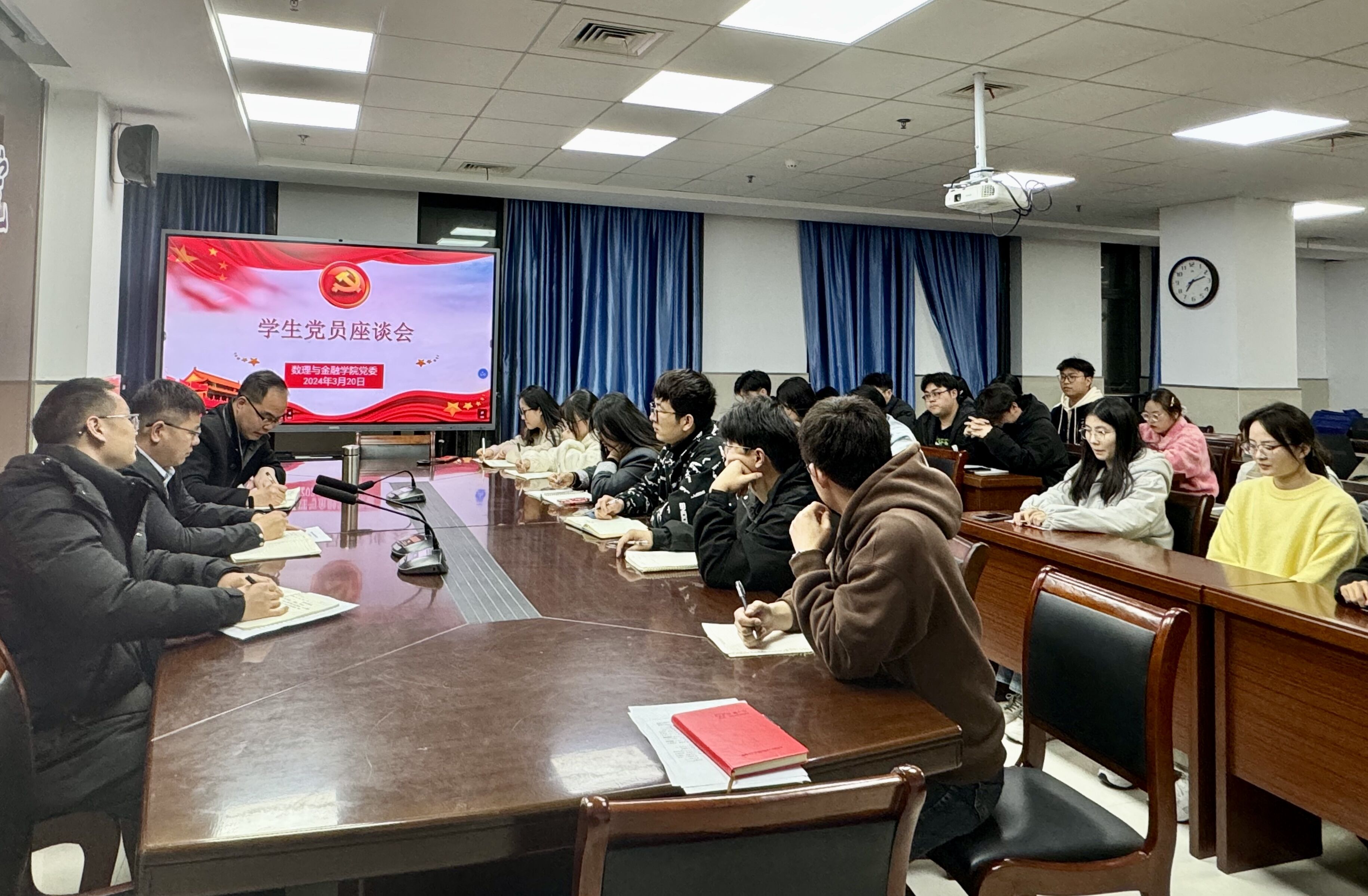 320日,数理与金融学院党委召开学生党员代表座谈会,学院党委书记林煦东、党委副书记何志恒、副院长张培雨以及各学生党支部党员代表参加了座谈会。座谈会由林煦东主持。