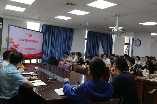 郭广春强调了开展党纪学习教育的重要意义,他立足《中国共产党纪律处分条例》的具体内容,结合高校纪检监察工作中遇到的实际案例,对六项纪律的主要内容、负面清单和违纪行为的责任划分进行了解读。他希望师生党员认认真真学习《条例》,保持两个“永远在路上”的清醒与担当,按照规章制度办事,做到心中有戒、知行知止,营造风清气正的育人环境。
