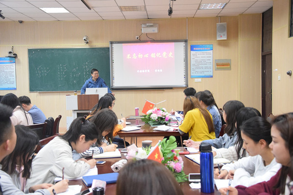412日,外国语学院党委委员、副院长黄焰结为学生支部全体党员和学院第三期发展对象培训班的学员们做了题为《铭记党史不忘初心》的主题党课。