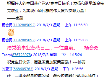 支部党员们纷纷在群里发表了对党的生日祝福,对伟大的中国共产党带领我们从国家独立民族团结、到今天的繁荣富强表达了深深的感恩之情,祝愿我们伟大的党带领伟大的祖国和英雄的人民乘风破浪,破除万难,勇夺社会主义建设事业的新的伟大胜利。党员们表示要坚定跟党走,拥护党的领导,追随党的脚步,砥砺前行,发扬和继承革命先辈的优良传统,爱党敬业,为实现中华民族的伟大复兴贡献力量。