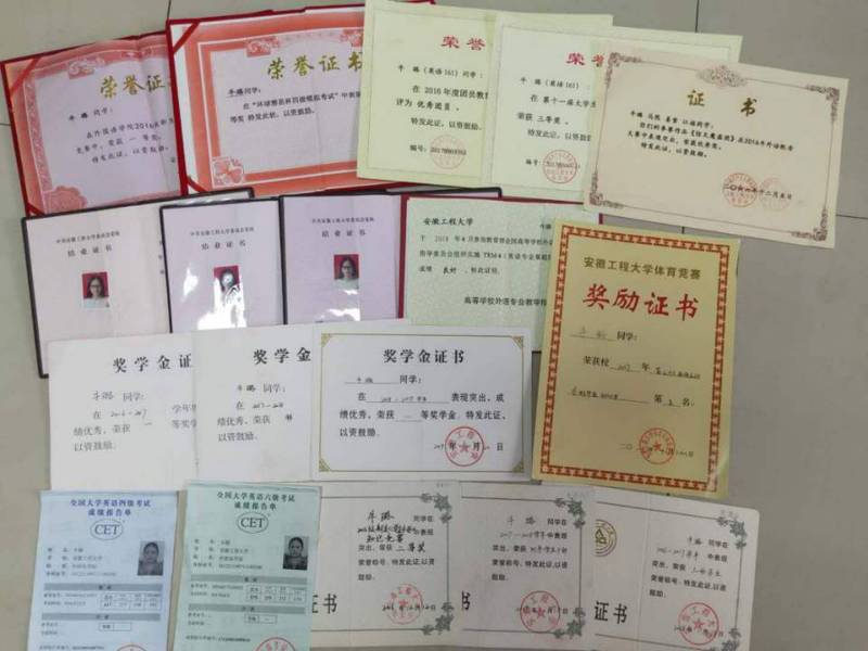获奖情况:校特等奖学金、校一等奖学金、优秀学生干部、优秀团员、三号学生。