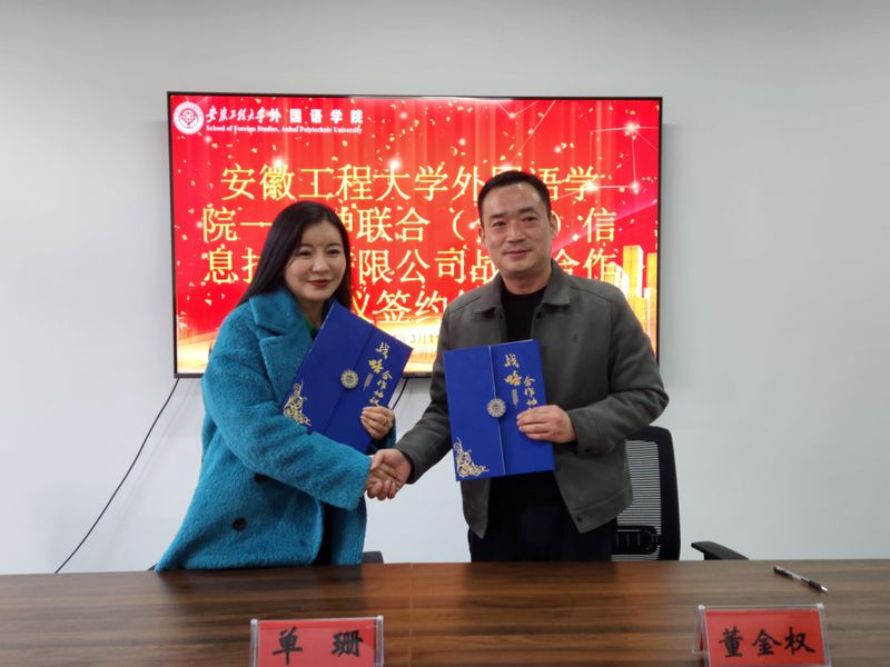 3月11日下午,应外国语学院邀请,传神(合肥)信息技术有限公司总经理单珊、合肥汉睿科技有限公司总经理凤凯一行四人来校洽谈合作。外国语学院党政负责人、系部主任、硕士点和团委负责人等参加了交流。会议由外国语学院副院长李新国主持。
