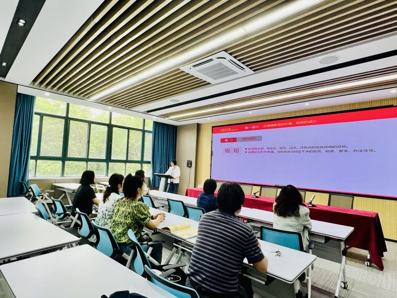 5月31日上午,英语系教师党支部在9教209会议室,举办了一场主题为“党员干部要讲规矩有纪律”的党课。本次党课由外国语学院副院长唐雪梅同志(主持工作)讲授。支部组织委员方志英同志主持了党课。