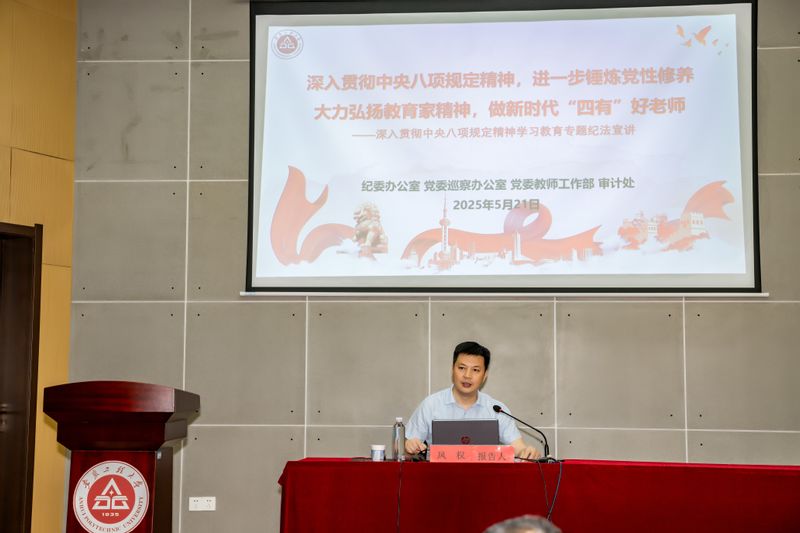 为贯彻落实党的二十届三中全会部署,巩固深化主题教育和党纪学习教育成果,锲而不舍落实中央八项规定精神,大力弘扬教育家精神,推动纪检监察监督与职能部门监管有效贯通,推动省委巡视反馈问题整改,教育广大党员干部筑牢廉洁意识、强化责任担当,引导广大教师学纪、知纪、明纪、守纪,营造风清气正的教书育人环境,2025521日下午,校党委常委、副校长凤权在C5楼报告厅为计算机与信息学院和外国语学院全体教职工开展深入贯彻中央八项规定精神学习教育专题纪法宣讲。
